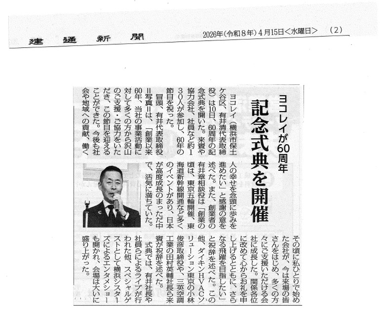 建通新聞に掲載されました。2026年4月15日