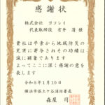 こちらがいただいた表彰状になります。