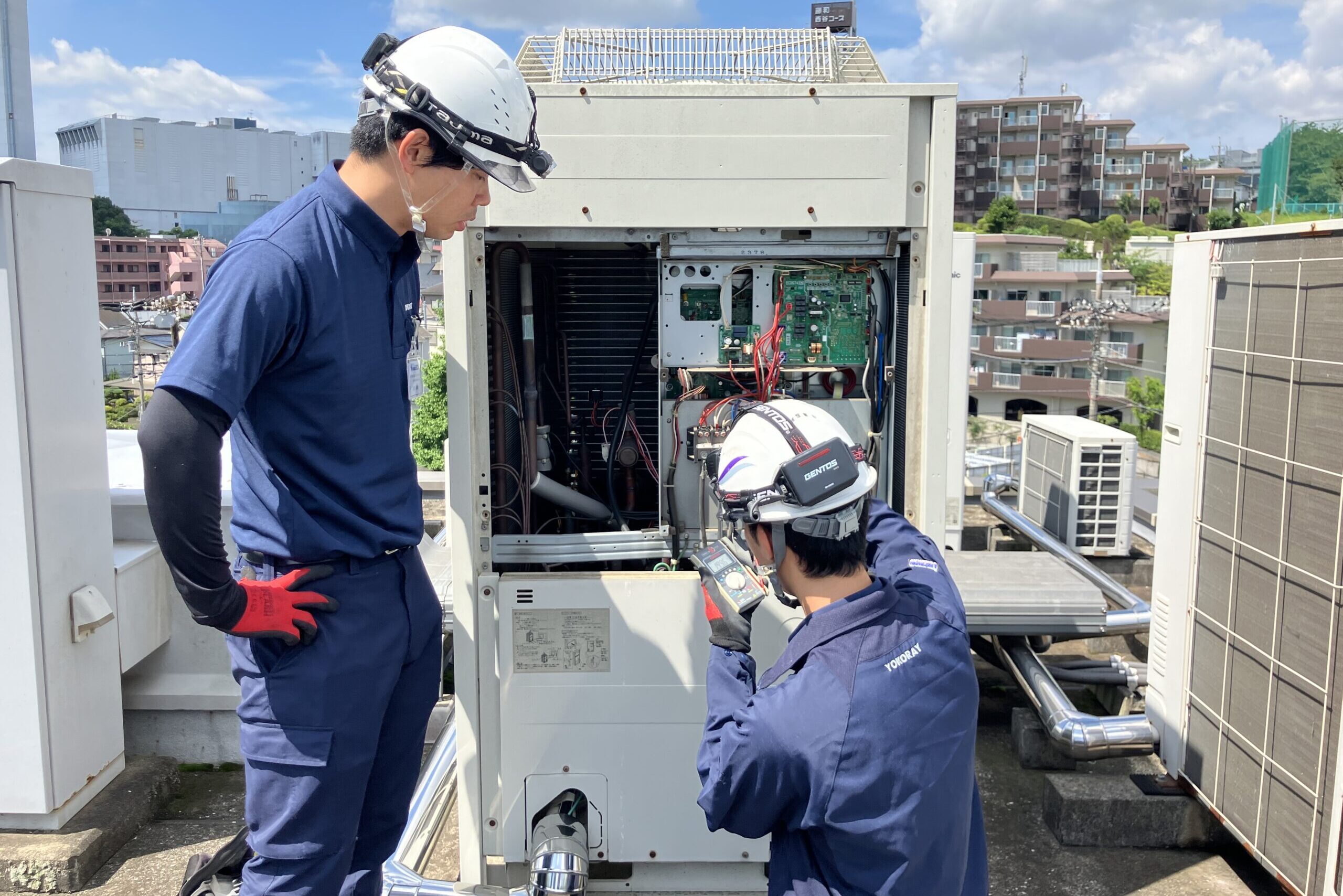 ビルや店舗、工場などに設置されている空調・給排水・衛生設備の点検および修理などのメンテナンス業務を担当します。お客様からご依頼があれば、すぐに駆けつけ、迅速・丁寧に対応します。「ヨコレイさんのおかげ助かった」「すぐ対応してくれてありがとう」など、感謝の言葉を直接いただくことが、私たちの仕事のやりがいです。入社から3年間は先輩社員と行動し、仕事に必要な知識やスキルを身につけていきます。また、当社ではビジネスパーソンとしての素養も重視しており、独自のカリキュラムのもと、幅広い知識や資格を習得していただきます。詳しい研修制度については、下記の『教育制度』をご覧ください。